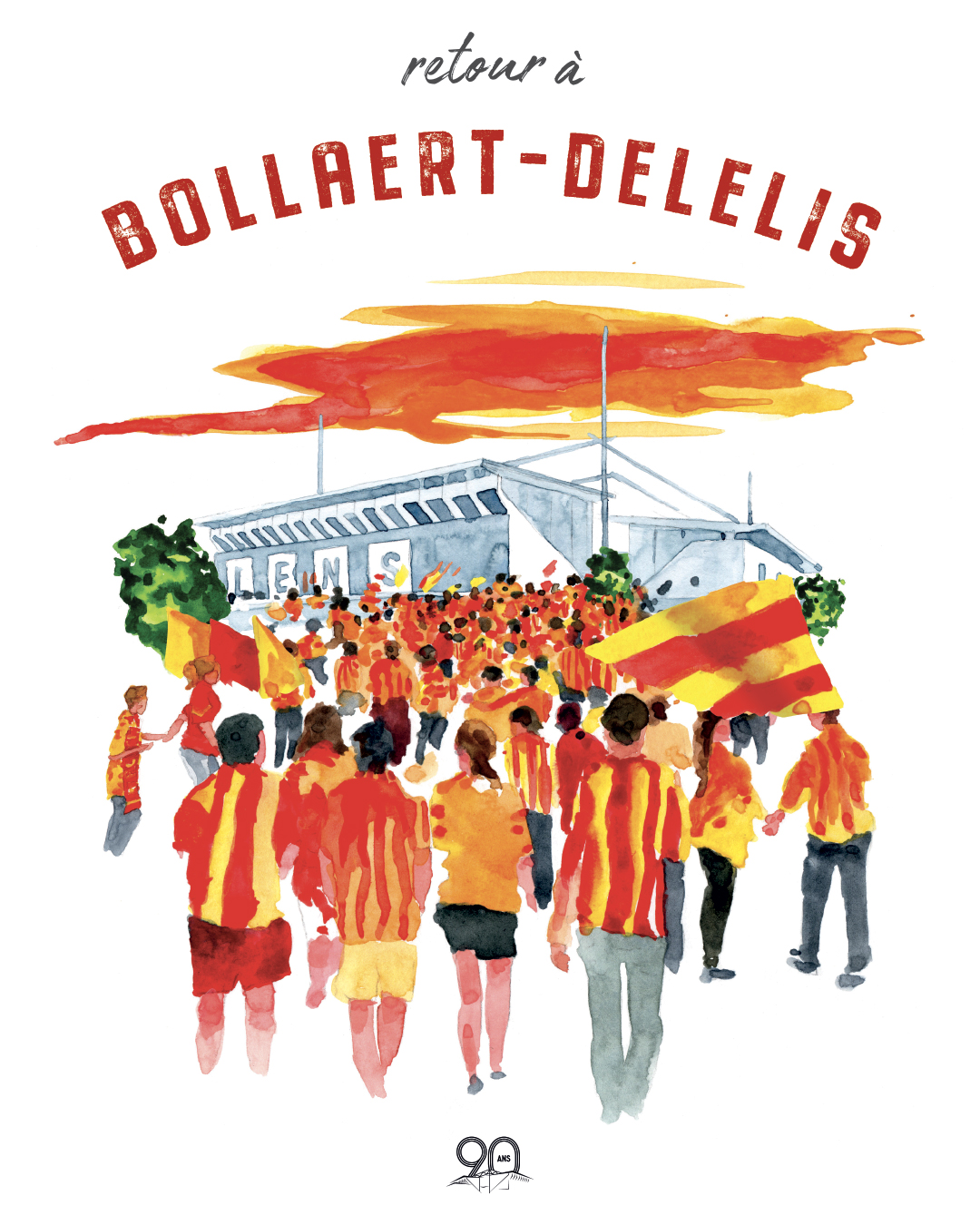 Des retrouvailles à fêter dignement ! Les Sang et Or renouent avec le chemin de Bollaert-Delelis, ce dimanche en Ligue 1 Uber Eats, après deux mois d’attente. Dans ce cadre, et plus spécialement à l’occasion du 90e anniversaire de l'antre lensois, le Racing présentera cette saison une affiche pour chaque match à domicile. Des créations originales à retrouver dans les boutiques officielles en amont de chacune des rencontres. Un peu d'impressionnisme pour débuter 2023-2024 de manière poétique ! Dans un style aquarelle, cette première affiche collector de la saison, réalisée par l'artiste Matthieu Redon, célèbre le retour des Artésiens sur leurs terres. Production artistique colorée, celle-ci met en avant la chaleur et la ferveur du public sang et or, sans oublier l'enceinte lensoise, fief du RC Lens depuis 1933. Imprimée en France (40 x 30 cm ; 250g/m²), cette réalisation est d'ores et déjà disponible en édition limitée (24,90€) dans les boutiques officielles du club et en ligne.