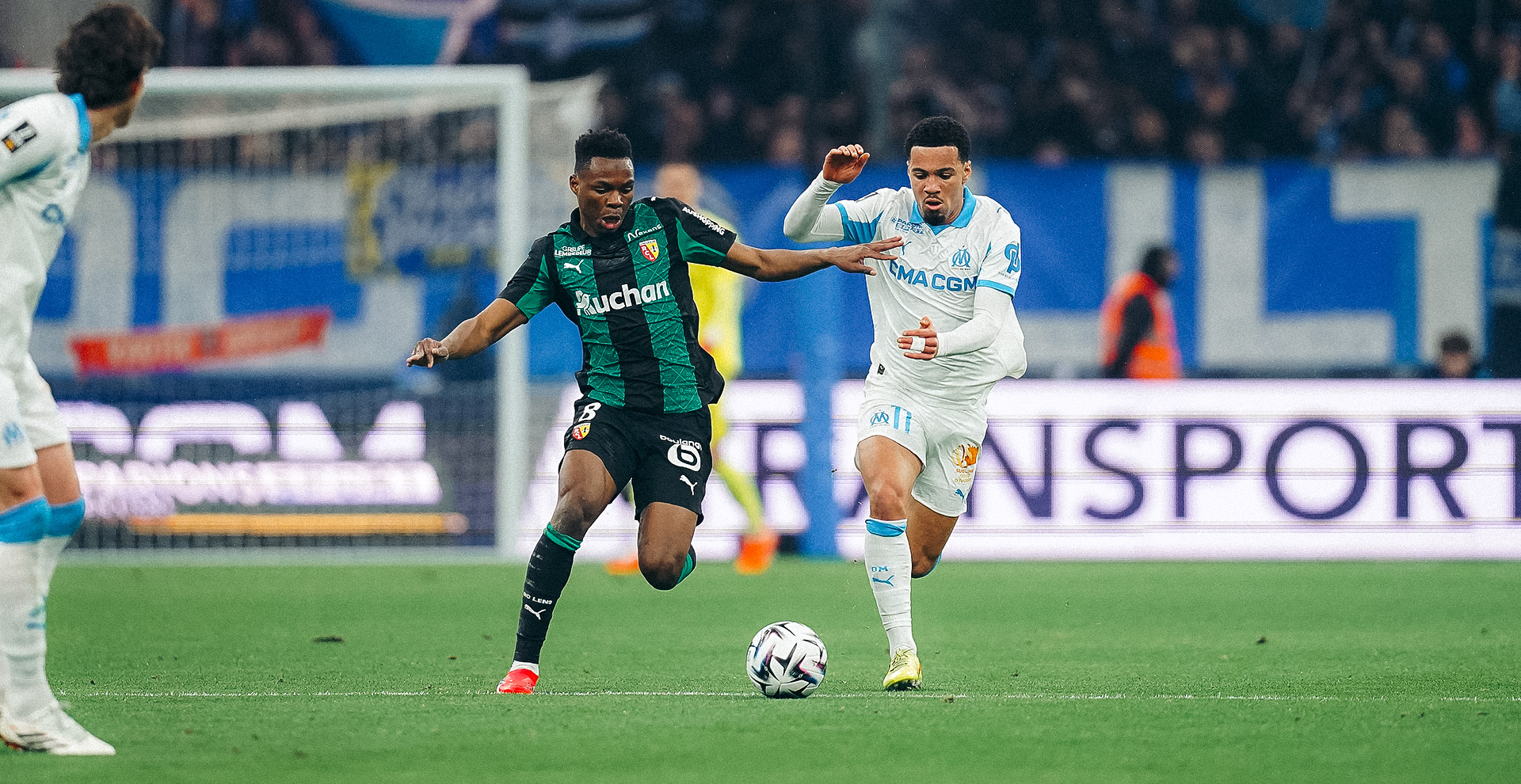Dans leur partie de terrain, les Phocéens subtilisent le ballon et laissent peu d’opportunités aux Lensois pour s’exprimer. Le rythme redescend après l’heure de jeu. De nombreux changements sont effectués par les staffs techniques pour tenter d’amener un second souffle et c’est l’OM qui en profite en inscrivant un troisième but après un beau mouvement collectif conclu par Amine Gouiri (3-0, 76’).