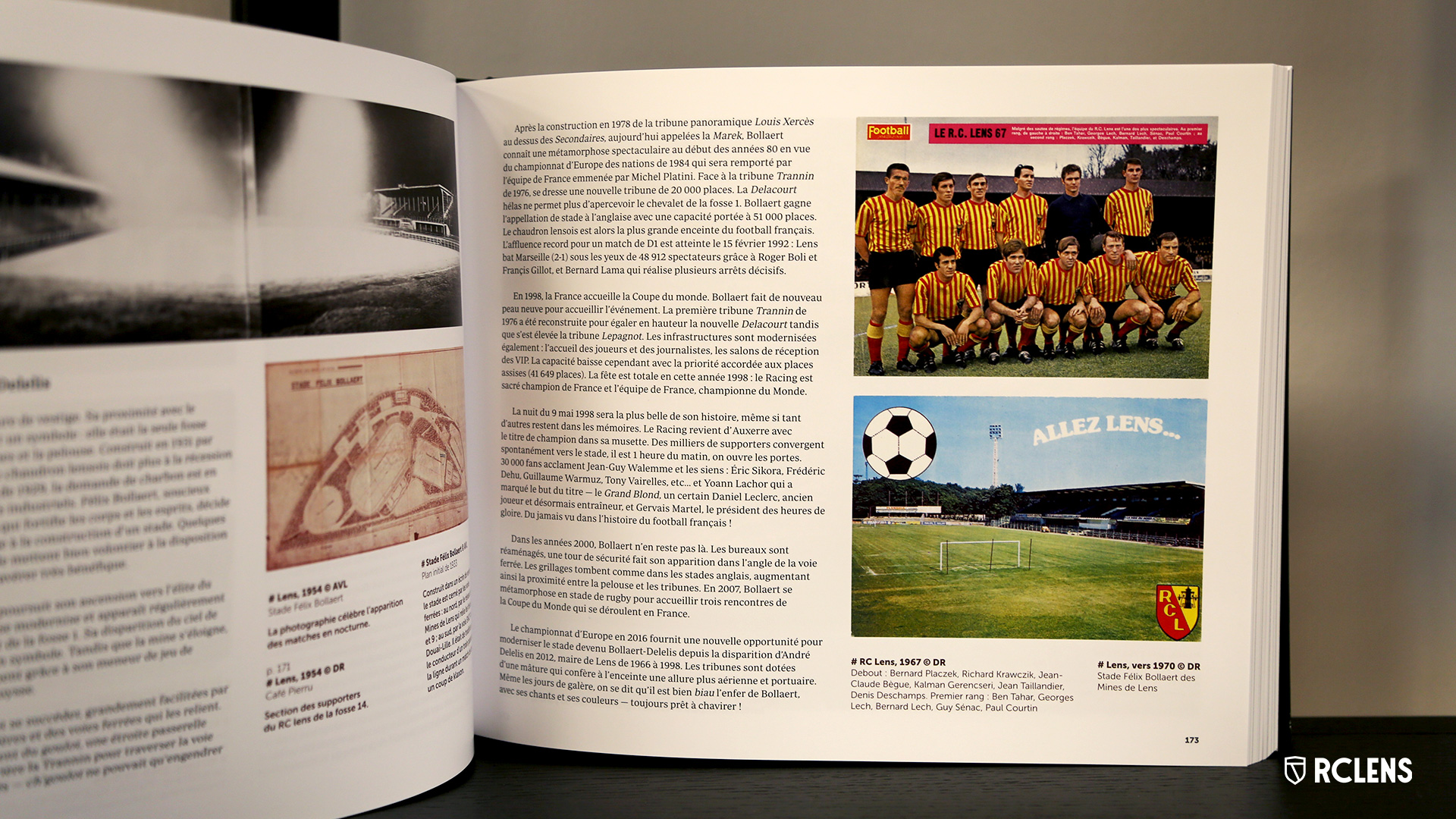 Cet ouvrage photographique, deuxième tome de la collection « Pays & paysages industriels du Bassin minier Nord-Pas de Calais », comporte plus de 600 documents d’archives et consacre huit pages au Racing Club de Lens. Il revient notamment sur la naissance du club lensois, son lien étroit avec la Compagnie des Mines de Lens et l’évolution architecturale du stade Bollaert-Delelis, de sa construction en 1933 à nos jours. « Le livre revient sur l’histoire de l’industrie minière mais aussi sociale du territoire », explique Virginie Blondeau, dirigeante aux éditions de l’Escaut. « Les photos permettent de comprendre les racines du RC Lens et son attachement au territoire minier. » Une bonne idée cadeau pour les fêtes de fin d’année !