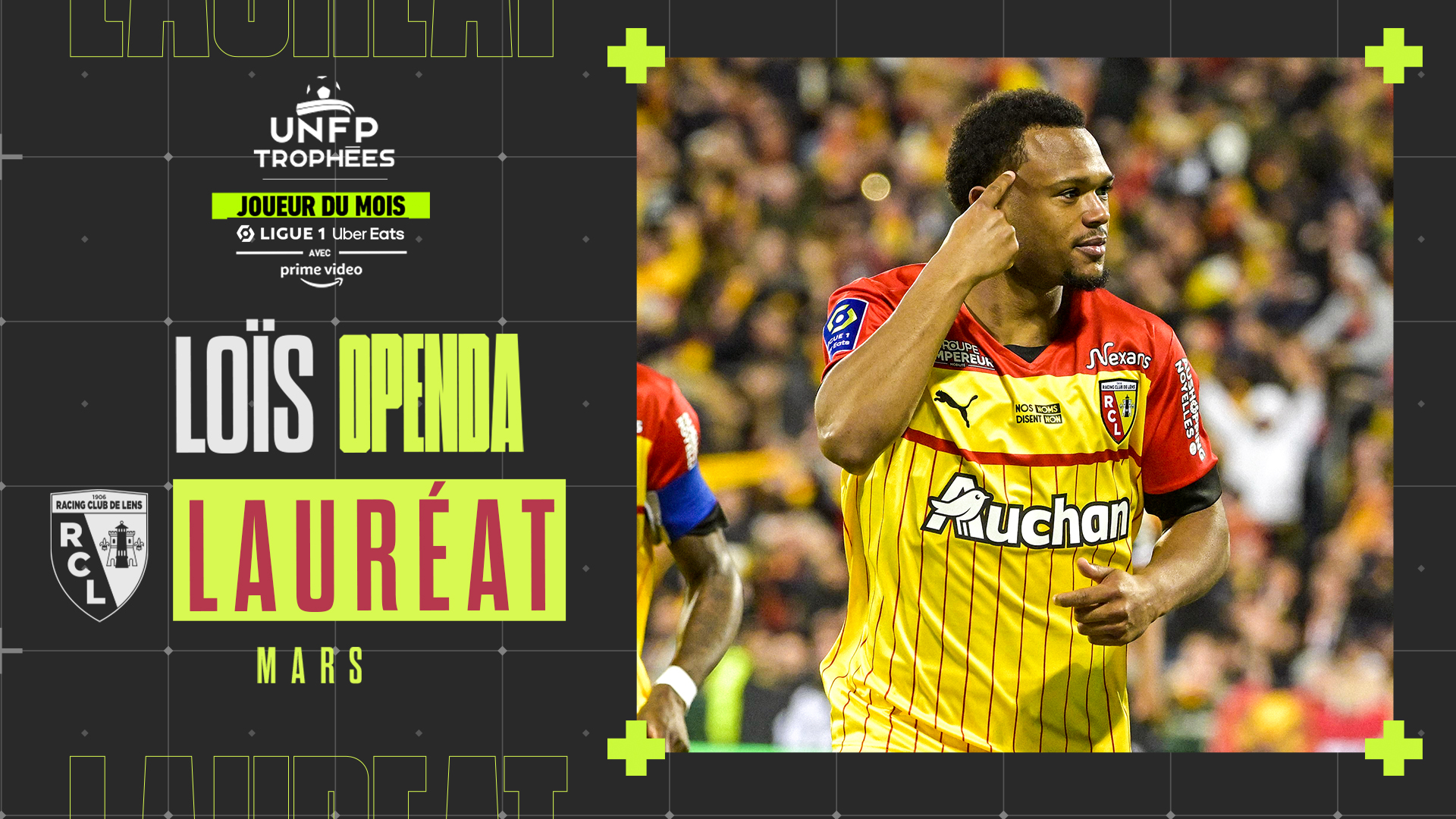 Jamais deux sans trois ! Loïs Openda devient le troisième Sang et Or de l’histoire à remporter le trophée UNFP du joueur du mois de mars en Ligue 1 Uber Eats, après Jérôme Leroy en août 2005 et Seko Fofana en septembre 2021. Une distinction méritée, portée notamment par un triplé historique sur la pelouse de Clermont et un doublé face à Angers. L’ascension ne fait que commencer pour l’attaquant de 23 ans, désormais installé dans le top 10 des meilleurs artificiers du championnat avec 15 réalisations au compteur.