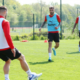 À trois jours de la réception du FC Nantes, ce samedi 30 avril à 17h00 au stade Bollaert-Delelis, les Sang et Or se sont entraînés à La Gaillette. Deux groupes distincts ont débuté la séance : les gardiens d'un côté et les joueurs de champ de l'autre, avant de se réunir pour de la mise en place. Facundo Medina, quant à lui, a effectué un travail individuel avec le préparateur physique.