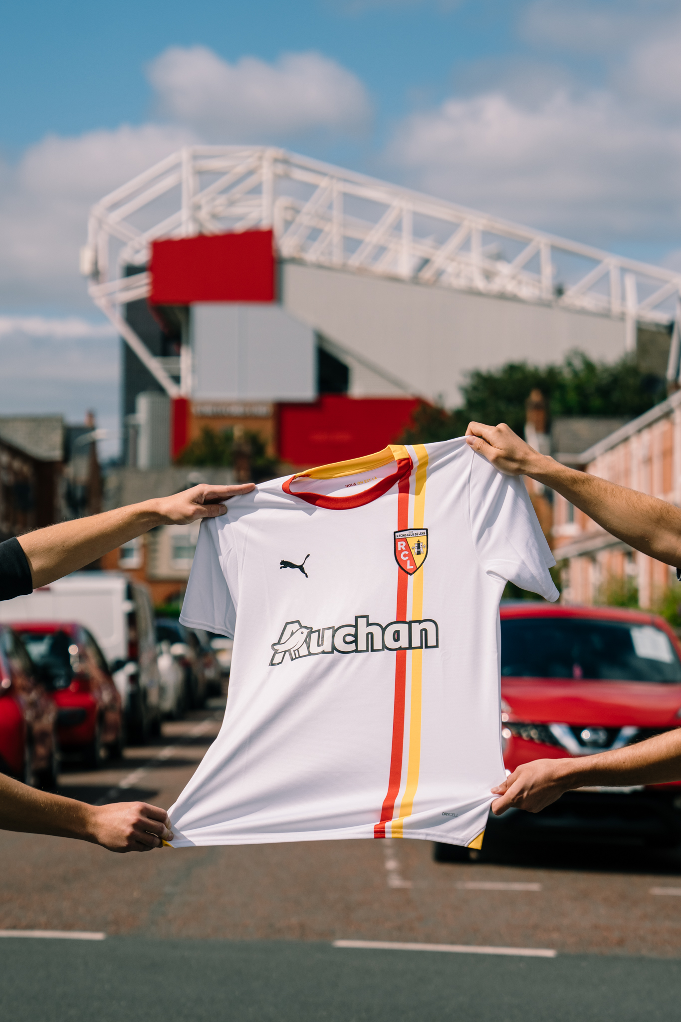 Un dispositif qui illustre la signature inscrite sur le col de cette troisième tunique : « Nous on est là ». Toujours désireux de surprendre les supporters, le Racing Club de Lens et PUMA ont choisi d'exporter un symbole de la culture lensoise en terres anglaises : une friterie personnalisée aux couleurs de la nouvelle tunique. Cette friterie très spéciale l'a présentée en avant-première aux supporters présents outre-Manche à quelques heures de la rencontre de préparation opposant les Sang et Or au Manchester United FC. Quelques chanceux ont eu l'opportunité de se voir offrir le nouveau maillot et le porteront fièrement en tribunes ce jour !